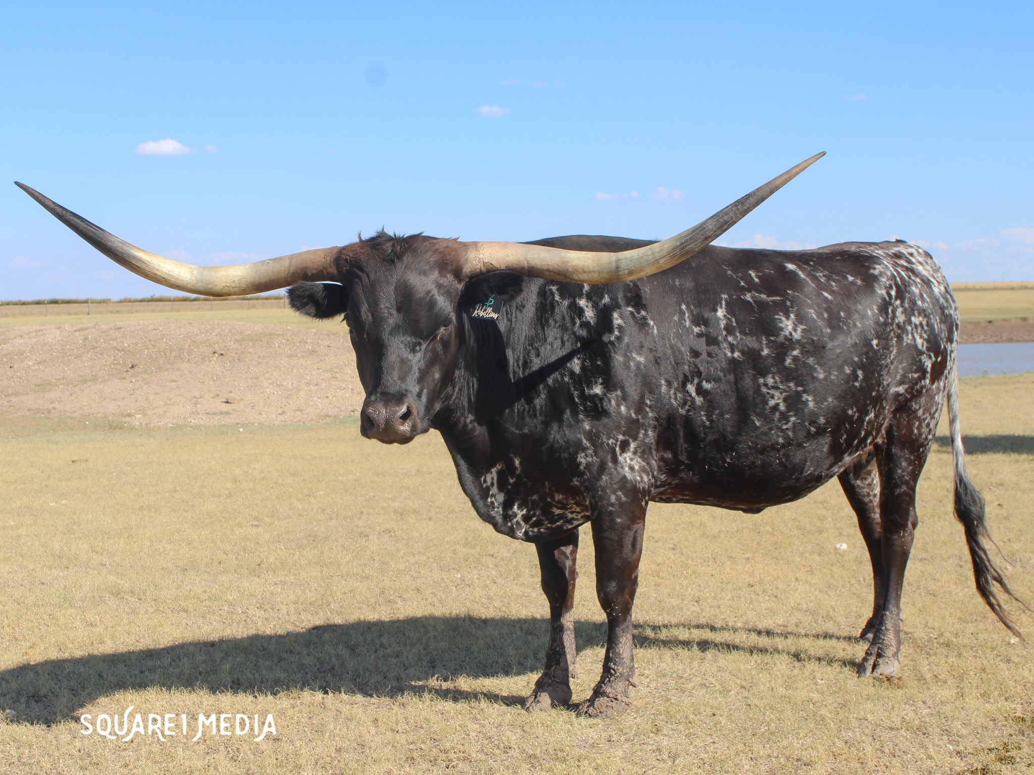 Flashy black and white beauty with the beginning of the iconic lateral horns twisting most elegantly. She had a dark Grulla speckled heifer in November 2021. Her dam is a daughter of Overkill bringing size, milk, and black color to the table. Her sire is the syndicated Rebel HR. The color options are unstoppable with an elegant twist. Her half sister HR Rosette sold for $700k and Awesome Reb for $140k at the 2022 Legends Sale most recently. The list goes on for what Rebel HR genetics can do to enhance your herd and Rebellious is a proven producer herself. She's given us 3 really nice heifers in a row.
